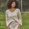 Modellen har A-facon og sidder til over barmen og har god plads til maven. Super duper også til et par ensfarvede bukser eller jeans.