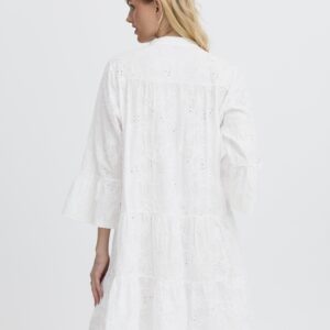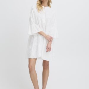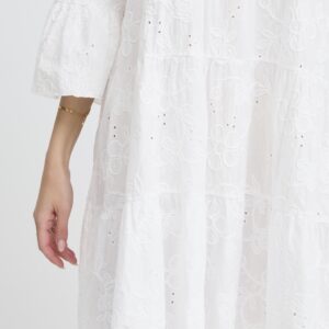 Super fin hvid kjole i Broderie Anglaise med V-hals og 2 perlemorsknapper
