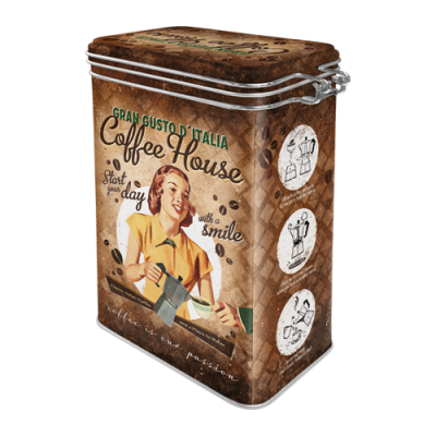 Lufttæt Kaffedåse med Coffee House retro print – Metaldåse