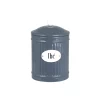 Müsli beholder i en smuk almueblå med monteret emaljeskilt med skriften Müsli foran.