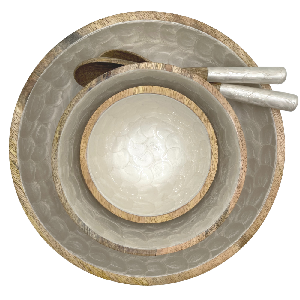 De flotteste dåser i sæt med hvid dekor i mangotræ med luftætte låg.