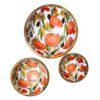 3 skåle i mango træ med pesto der kan bruges til tapas, nødder, slik eller dekoration, da de med deres smukke mønstre er dekorative i sig selvDe er håndlavede i Indien og der kan derfor være ujævnheder i træet, da det er naturen, de arbejder med.