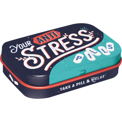 Metaldåse med mintpastiller – Anti Stress Pills