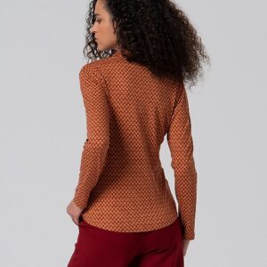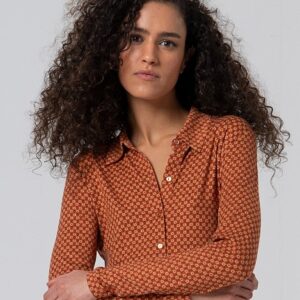 Denne bluse er mønsteret i Toffee-farve som er en varm, lys brun farve, der minder om farven på toffee slik, som en blød karamel