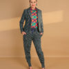 Fantastisk buks i vaffelvævet stof med flere farver. Buksen har stukket pressefold, elastik linning med bindebånd og store grønne knapper i den falske gylp. Ydermere skrålommer foran og buksben afsluttes med høj tætsiddende manchet med lynlås i siden. Flot sæt med jakken Repetition.