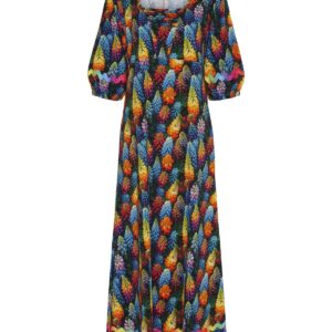 Wauw !! Så er der Lupiner i alle farver – Sikke et fantastisk print <3 Super skøn lang kjole som er skåret under barm med trekants indsats og ærmer er med let rynk og lille elastik afslutning. På ærmerne og forneden prydes modellen med et flot farverigt bånd. Smuk til hverdag og fest, med sandaler, sneakers eller stilletter – den kan det hele.