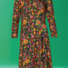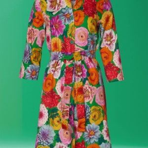 Jakke eller kjole i et fantastisk flot print i alverdens farver. Modellen er gennemknappet og har lommer i siden og har ekstra god vidde forneden. Et håndbroderet hjerte pryder Jakken / kjolen forneden i højre side. Man kan lukke den med et bælte, som dog også kan bruges som hårbånd. Meget populær model da den har mange anvendelsesmuligheder. Vi kommer med en masse forslag til tights da der er uanede muligheder. Husk du kan klippe tåen af og lave dem om til leggings.
