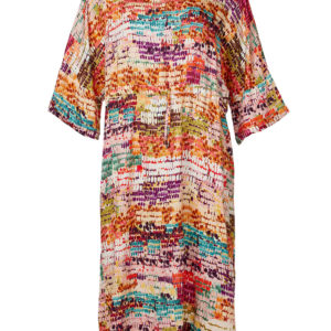 Ny model fra duMilde etc. i et væld af smukke farver i super print. Modellen har et let kaftan-udtryk med bindebånd, dropshoulder ærmer med bred kantafslutning, lommer i sidesøm og slids på 19 cm i siderne.