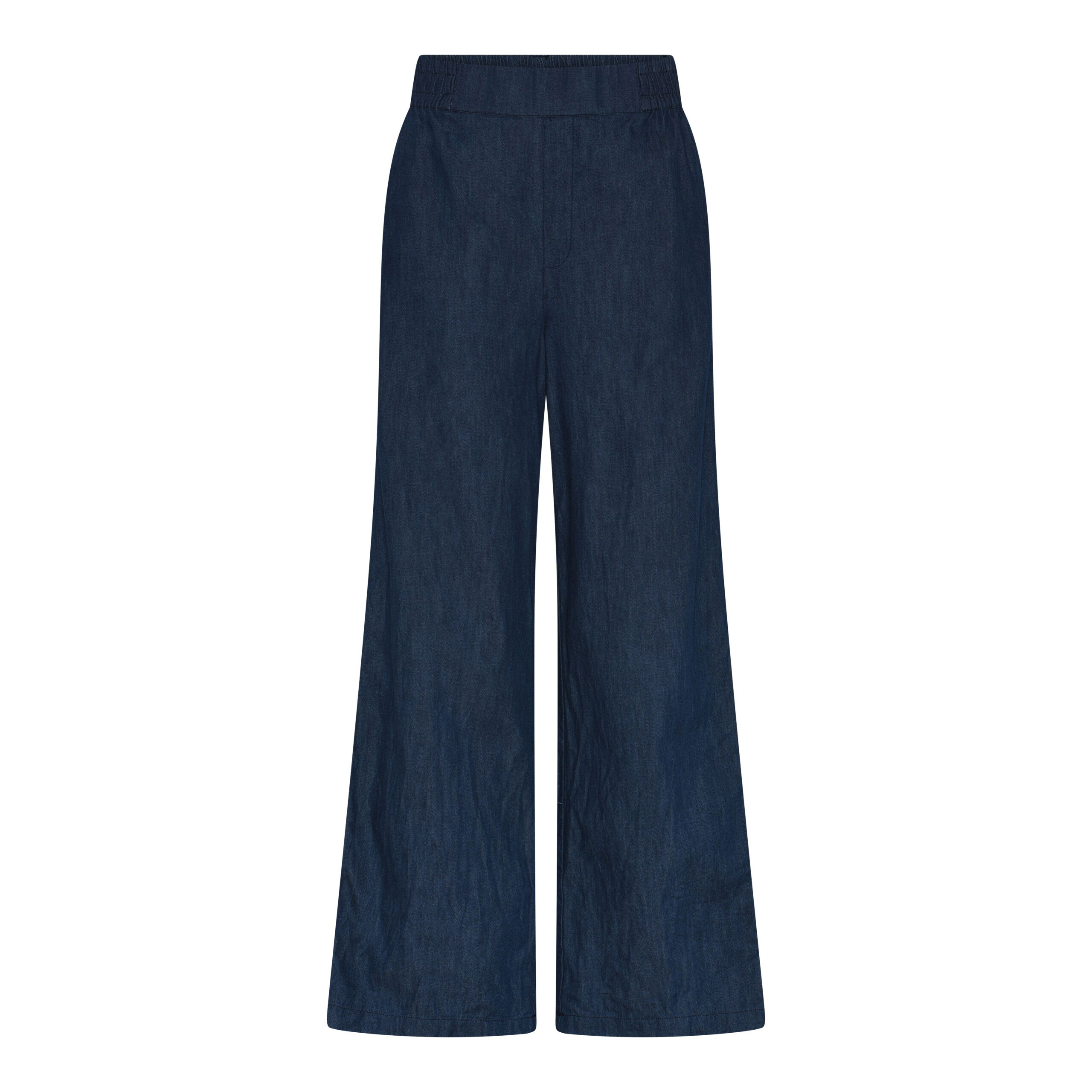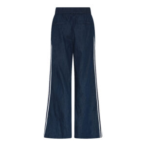 Jeans buks med brede ben, lommer i siden og gallon stribe i siden. Modellen har bred linning med elastik og bæltestropper samt Humble broderet på linningen.
