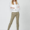 Smart buks med let baggy pasform i et spændende print med hvide og grålige nuancer i en neopren kvalitet. Bukserne har mellemhøj talje med elastik linning og skrå knaplukning foran med sorte metalknapper samt indstillelig strop detalje i siden. Modellen har lommer i siden samt en fake baglomme.