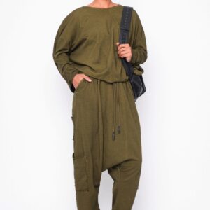 Spændende berberbuks med 3 store lommer på bukseben samt lommer i siden. Modellen har bred elastiklinning og snoretræk og bukseben er afsluttet med ribkant.