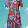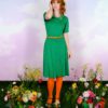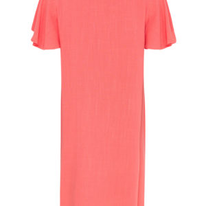 Fin og let kjole i skønt materiale i koralrød. Modellen har bred rund hals med smalt kantebånd og med rundskåret/vinge ærmer samt 10 cm høje slidser i siden.