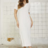 Fin og let kjole i skønt materiale i koralrød. Modellen har bred rund hals med smalt kantebånd og med rundskåret/vinge ærmer samt 10 cm høje slidser i siden.