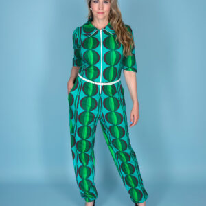 Lækker buks i skønt materiale i afslappet stil. Modellen har fast linning foran og med elastik bagpå samt lommer i sidesøm.