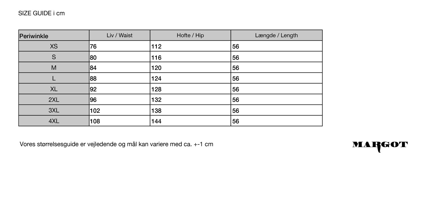 MARGOT er et dansk tøjmærke, der er designet helt fra start til slut af Margot Weinreich Mikkelsen. Mærket har eksisteret siden 2005. Margot har en helt speciel evne til at designe sine kreationer med finurlige, funky og “spot on” detaljer hvilket er det, der karakteriserer hendes design mest. Alt er lavet med retro touch, farverig glæde, funky detaljer og er fyldt med kærlighed.Margot er et brand til den modige, nysgerrige og selvbevidste kvinde der kan lide at skille sig ud. Margots design er tilgængelig i størrelserne xs – 4xl