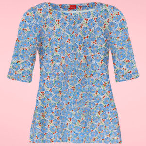 Skøn sommerbluse i aquagreen med lille v- hals og super kvindelig pasform. Indsnit ved bryst som gør blusen meget klassisk og giver et ” twist ” af skjortebluse.