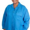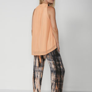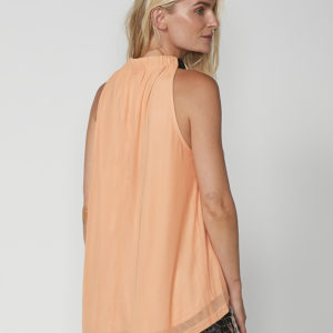 Let bluse i 2 lag hvor det yderste er et fint vævet net. Blusen har elastik i halsen så det bliver en stående krave og en fin lille v- hals, længden er god og så har den A-facon. Blusen er rundskåret og længere bagtil.