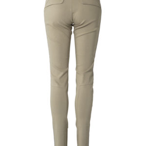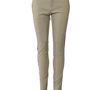 Flot og elegant buks med smart skinnende pippingbånd i siden. Den skønneste stræk kvalitet med elastik i linning, bæltestropper og skrålommer m/lynlås. Buksen sidder til og har ” fake” baglommer og spændende dekorative syninger ved knæ. Brug den evt. med Blazer som eksklusivt sæt eller med en T-shirt for et mere afslappet look.