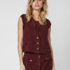Let og fin vest med skønne detaljer som skæringer med stikninger, rå trykknapper, pyntelommer, talje-bånd bagpå samt slids. Fiks over T-shirt og skjorte.