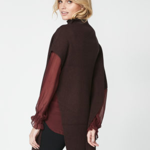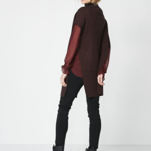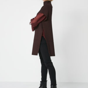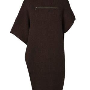 Super smart og cool poncho med lang pasform lavet i en blød og behagelig ribstrik kvalitet. Ponchoen har høje slidser i siden, stående krave og en lynlås-detalje samt er asymmetrisk på ærmer og længde, som giver et helt unikt look. Du kan nemt style denne poncho over dit outfit, uanset om du er på vej til arbejde eller en aften date. Den er perfekt både ude og inde, hvis man ønsker et ekstra lag af varme og stil.