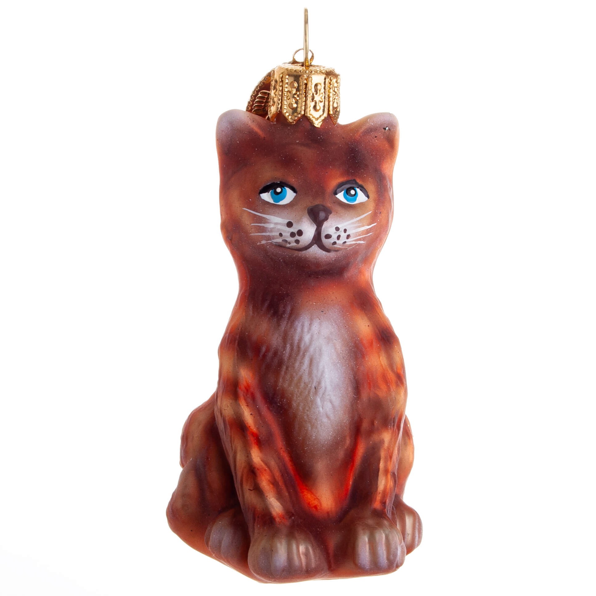 Sød kat som julepynt. Den rød stribede kat vil pynte fint på juletræet.