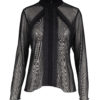 I halskanten er en meget elegant dobbeltlags krave som “står op” og der er lynlås i ryggen.