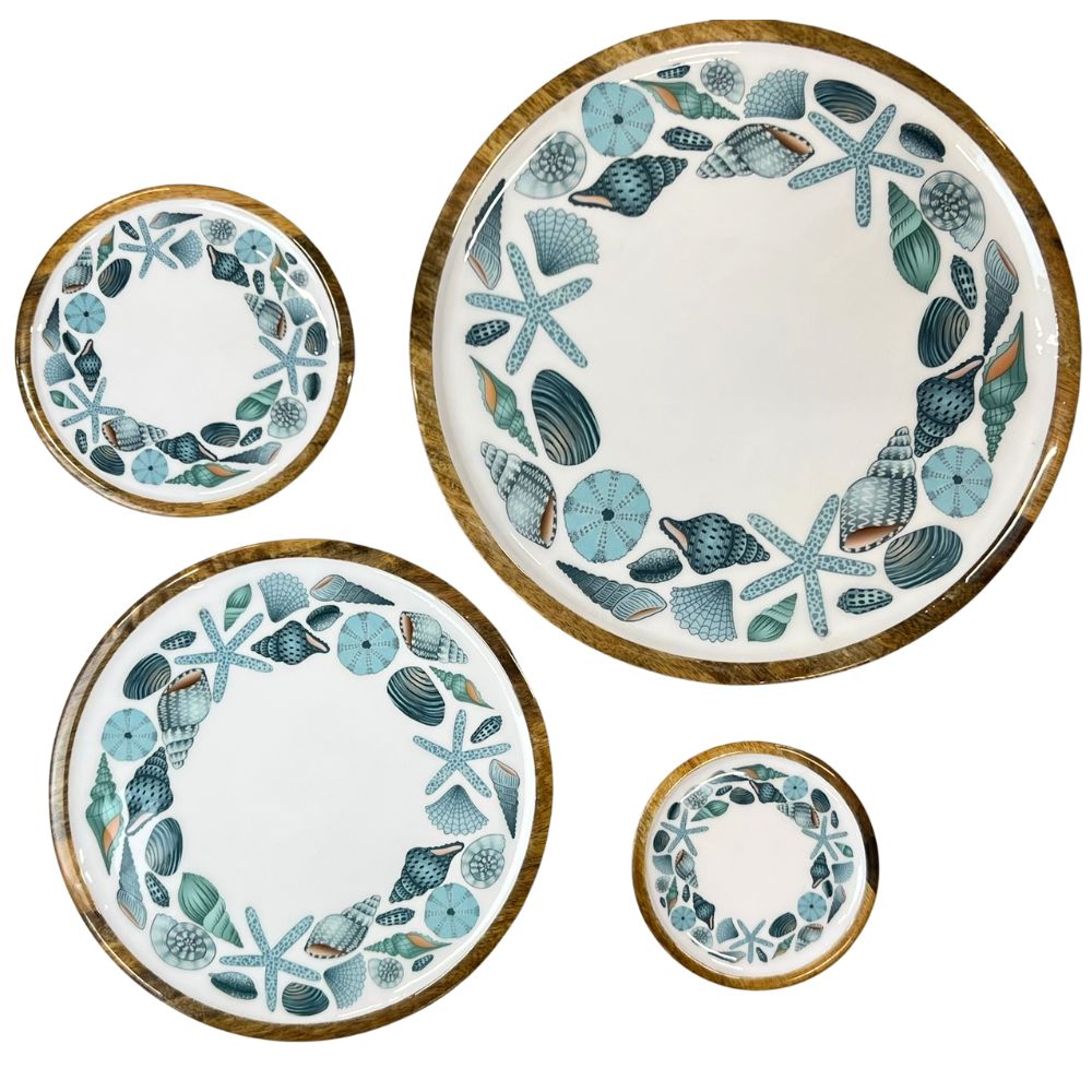 Mango tallerkener i sæt m/4 stk. i et flot mønster der kan bruges til servering af mad eller dekoration, da de med deres smukke mønstre er dekorative i sig selv. De kan også bruges som fade eller bakker og er håndlavede i Indien og der kan derfor være ujævnheder i træet, da det er naturen, de arbejder med.