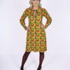 Orange, grønt og brunt – dejlige farver i skønt print. Modellen er i let A-facon med høj hals. Klædelig med bælte og skøn med jakke, f.eks. Sully Blazer.