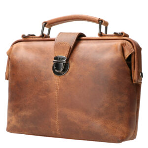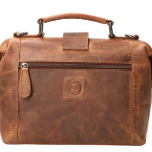 Smart lædertaske med indstillelig skulderrem lavet lidt som den ” gammeldags doktortaske” i mindre udgave.