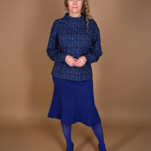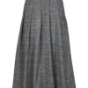 Nederdel skåret i baner som går ned i trompet facon. Modellen har elastik linning og falder så flot.