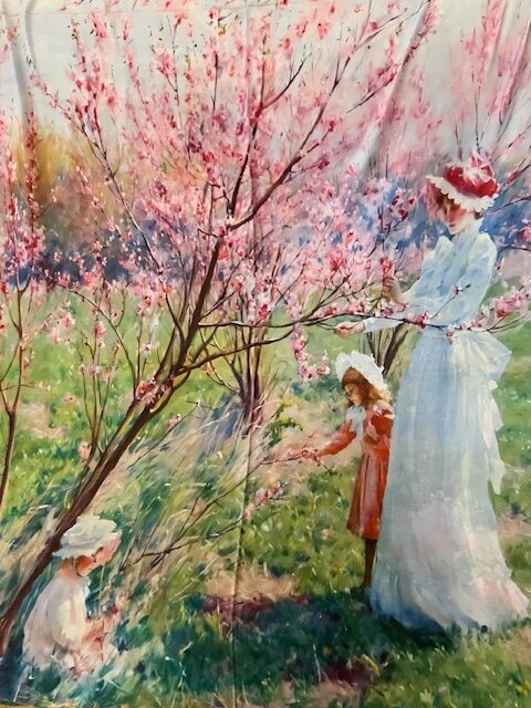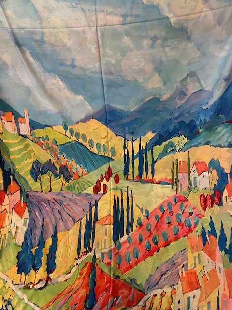 Mega flot og blødt tørklæde med print på begge sider, der er meget forskellige. Nogle har blomster på den ene side og et landskab bagpå, andre et print med damer og blomster osv. osv. Da de er unikaér kan jeg ikke garantere hvordan printet vil være, men du kan være sikker på det er flot 🙂