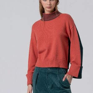 Sweater i petrol/fersken med kontrast rullekrave – Surkana