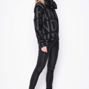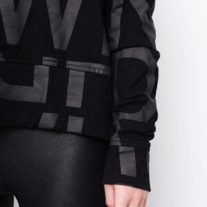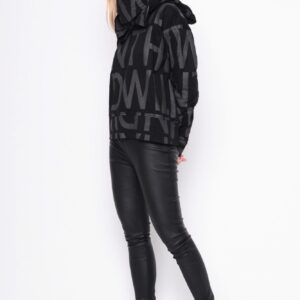 Fantastisk lækker oversize bluse med printede bogstaver i grå. Modellen har rund hals med smal kant og med bred kantafslutning ofrneden og på ærmer.