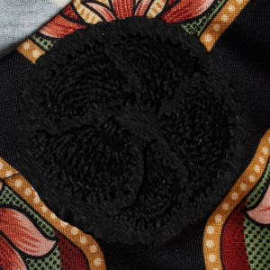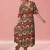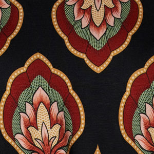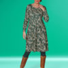 Smuk smuk model duCaroline i det fineste print á la lotus i skønne farver på sort bund. Modellen har lange ærmer rynket til bred kantafslutning, og lommer i sidesøm. Hæklet blomst sidder ved halsudskæring.