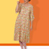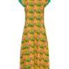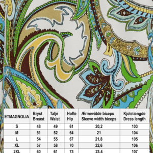 Det skønneste lette og feminine paisley print på denne fine duMilde etc. kjole. Modellen bliver samlet under barm med små læg. Lukkes i ryggen med lille knap og ærmerne afsluttes med slids med spændetap. Kjolen har rund hals, lommer i sidesøm og “dypper” elegant i siderne.