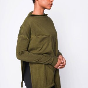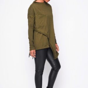 Asymetrisk flot bluse i 2 lag, hvoraf det yderste ligger lige som et slag udover. Modellen er slidset i siderne og har blød fald ned krave samt en lomme på højre side. I den inderste bluse bliver slidserne afsluttet med bindebånd, så man kan ” lave lidt sjov og individuel styling” Brug den sammen med buksen i samme serie for et spændende look.
