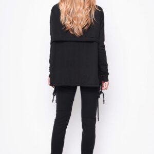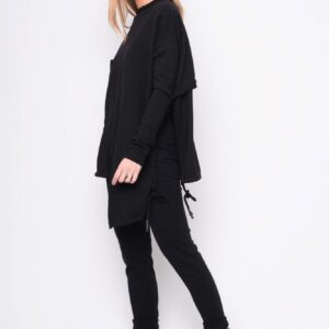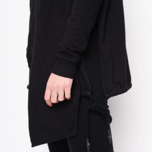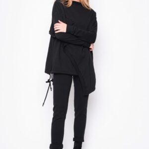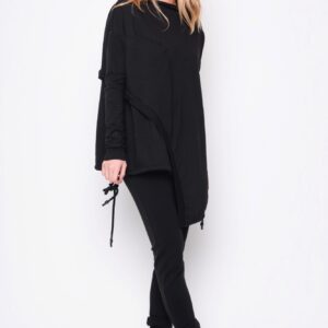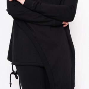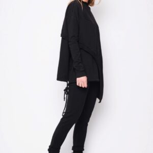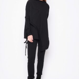 Asymetrisk flot bluse i 2 lag, hvoraf det yderste ligger lige som et slag udover. Modellen er slidset i siderne og har blød fald ned krave samt en lomme på højre side. I den inderste bluse bliver slidserne afsluttet med bindebånd, så man kan ” lave lidt sjov og individuel styling” Brug den sammen med buksen i samme serie for et spændende look. Modellen er meget rummelig