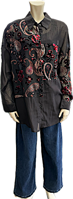 Super flot transparent sort skjorte med velour broderier og god længde.
