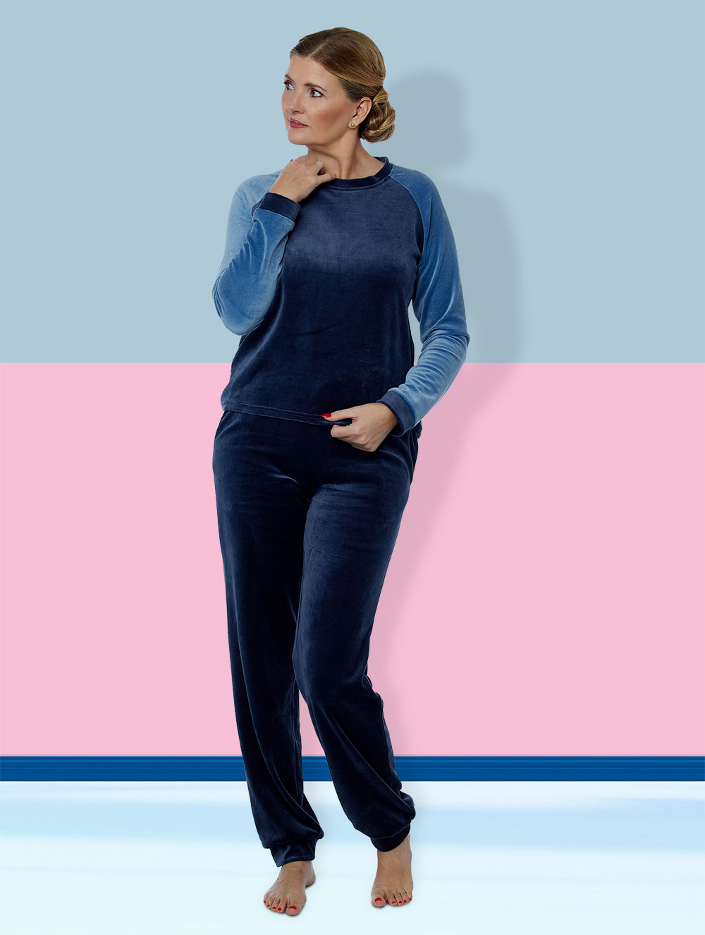 Buksen er 2 farvet med lommer i siden samte snoretræk i taljen. Kombinér med den passende bluse for det perfekte hjemmesæt.