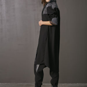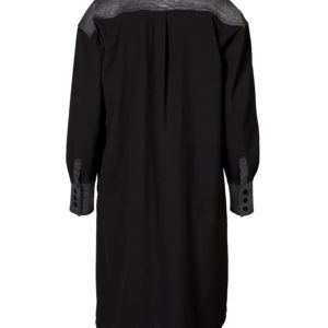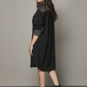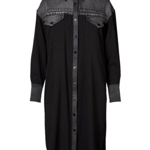 Genialt designet kjole med skønne design detaljer og materiale mix. Krave, ærmekanter og brystlommer tilføjer et cool touch til det klassiske design. Med knaplukningen foran kan kjolen også bruges som åben jakke udover mange andre outfits.