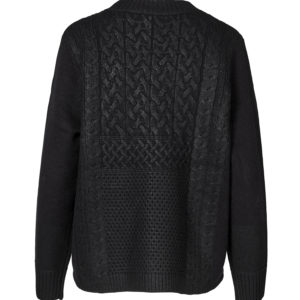 Super flot striktrøje kombineret i forskellige strikmønstre, hvilket gør den rigtig spændende. Den har klassisk rund halsudskæring og ribstrikkede kanter. Sweaterens bløde materiale sikrer komfort og varme, hvilket gør den perfekt til de køligere måneder.