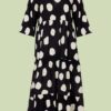 Model duCarly er en let tunikakjole som har fået nyt udtryk med kraven. Ærmerne er albue lange og har bred afsluttet kant og tunikaén har forneden r en ca. 16 cm lang slids i begge sider. Super fin model både til strømpebukser eller bare ben. Ja du kan sågar med fordel tage en stram buks indunder.