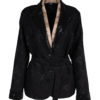 Elegant blazerjakke med et unikt for- og rygstykke med brokade mønster. Modellen er dejlig lang og har et flot revers samt 2 knapper og lommer foran. Denne blazer kan pifte ethvert outfit op 🙂