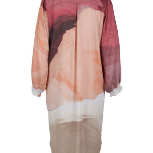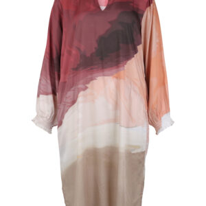 Kjole i et flot abstrakt print med løs pasform og elastik smock-ærmer hvilket gør at kjolen kan bruges både til hverdag eller fest. Style den evt. med et par støvler og et par stramme jeans og et læderbælte for et afslappet råt udtryk. Med smock-ærmerne kan du selv bestemme hvor lang ærmerne skal være.