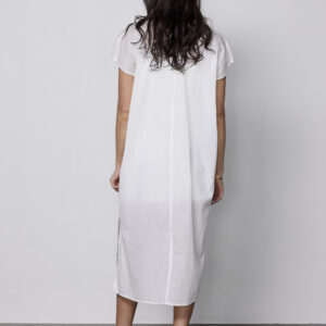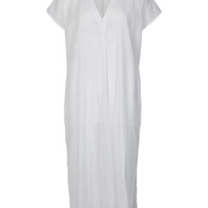 Lækker let kjole i et enkelt og afslappet snit med korte ærmer og V-udskæring. Det lette materiale gør at kjolen er ideel til varme dage og den lange længde og sideslidserne giver både komfort og bevægelsesfrihed.