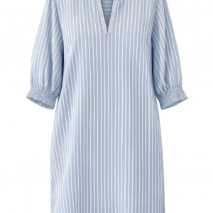 Lækker let kjole i et enkelt og afslappet snit med korte ærmer og  V-udskæring. Det lette materiale gør at kjolen er ideel til varme dage og den lange længde og sideslidserne giver både komfort og bevægelsesfrihed.