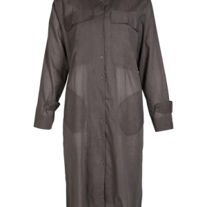 Fantastisk let og brugbar skjorte/kjole i en skøn bomuld til mange anledninger. Den har et afslappet og funktionelt udtryk med knaplukning hele vejen ned og hætte bagpå, Den er designet med brystlommer samt rummelige sidelommer, og ærmerne har som design detalje en strop og knap for et mere “råt look”. Materialet er let og behageligt, hvilket gør den ideel som lag-på-lag.