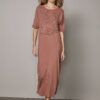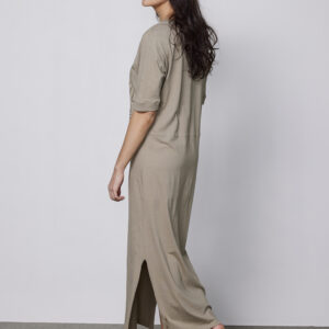 Lang kjole med rund hals og albuelange ærmer kombineret med et grafisk print foran. Den lange, lige silhuet og et blødt fald, giver et afslappet og behageligt udtryk. En slids i siden, der går op til under knæet, giver ekstra bevægelsesfrihed og et feminint touch.